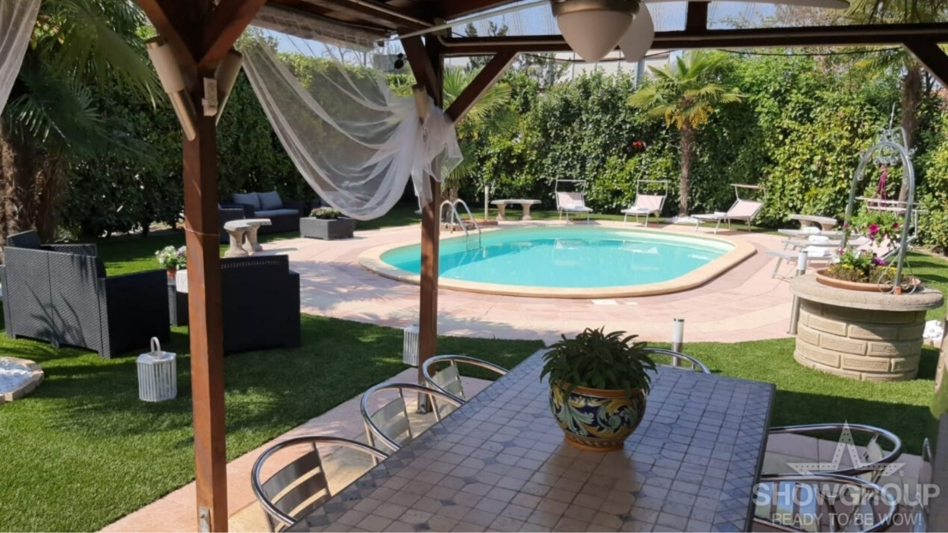 L’intera villa è attrezzata di: wifi fibra gratuita, audio, luci, e di aria condizionata. La location è circondata da un parco di oltre quarantamila metri. Il parco è stato studiato per lasciare spazio al pensiero e isolare la villa dalle costruzioni circostanti rendendola una vera oasi di tranquillità; la grande terrazza verde, il portico e il capanno insieme all’ampio invaso decorativo completano ed arricchiscono gli ampi spazi all’aperto. Tutta la proprietà è illuminata tramite un sistema domotico a scenari di ultima generazione che permette di creare atmosfere uniche attraverso l’ausilio di oltre dodicimila luci a led. Per l’organizzazione del tuo addio al nubilato scegli Villa Walter Fontana cliccando qua.