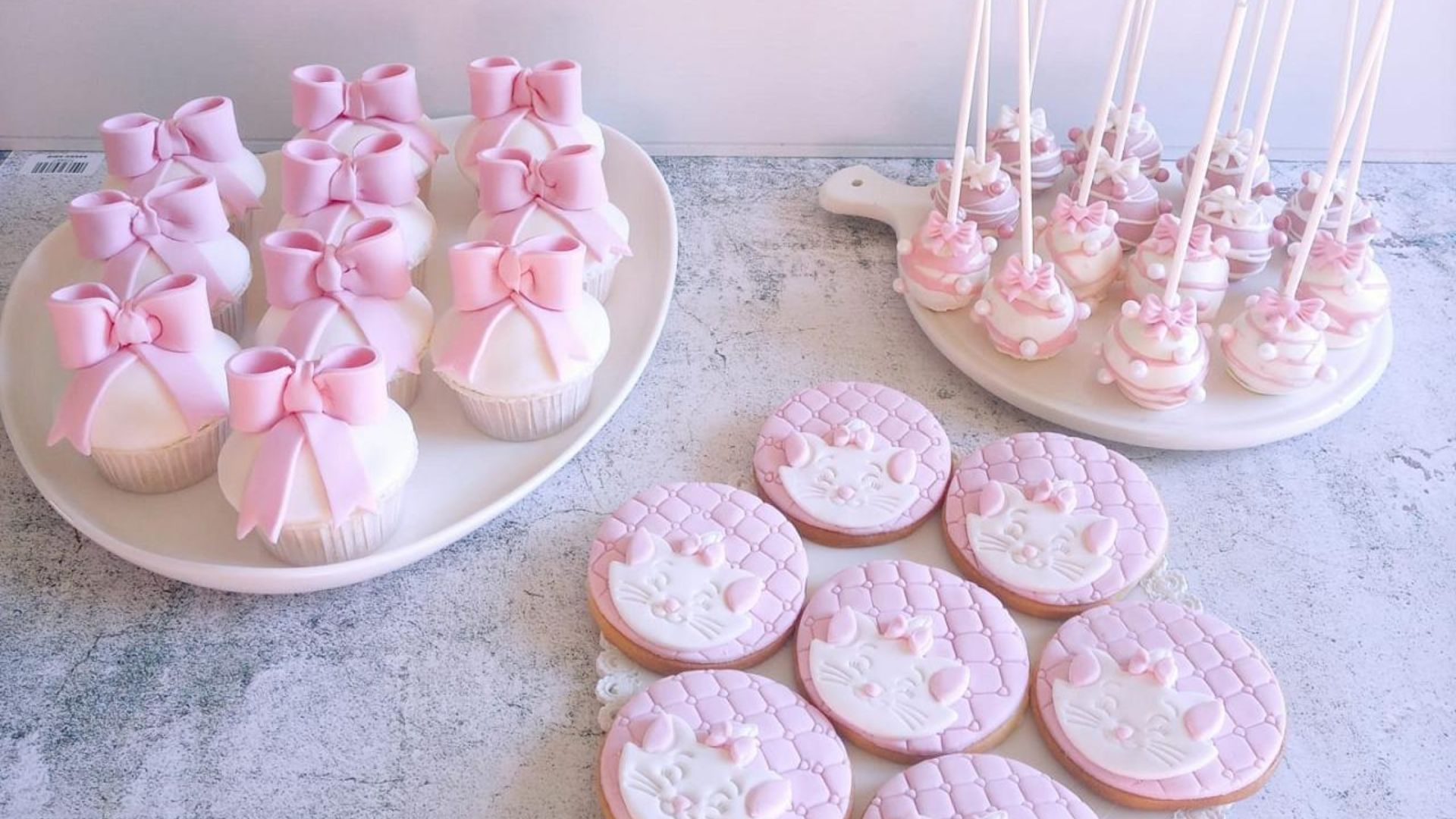 Un tavolo pieno di mini-creazioni golose – cupcakes, cake pops, tartellette, dolcetti al cucchiaio – tutti in palette con la festa, magari con il tuo nome o il tuo numero.