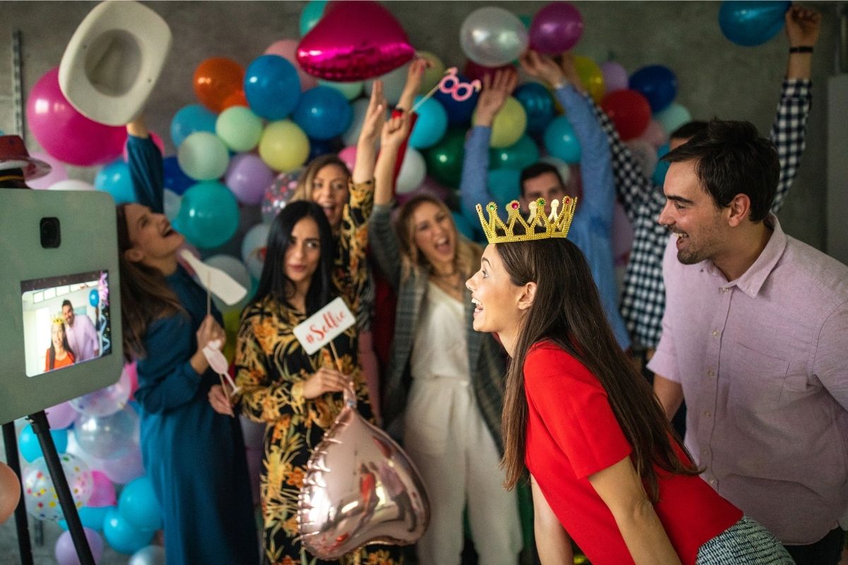Da non dimenticare gli eventi tra amici, come gli addii al nubilato. In questi casi, il photo booth è praticamente un rituale: ogni amica sfodera il proprio accessorio, si scattano foto ironiche, si ride fino a tarda notte. Aggiungi qualche elemento personalizzato per la futura sposa e il gioco è fatto.